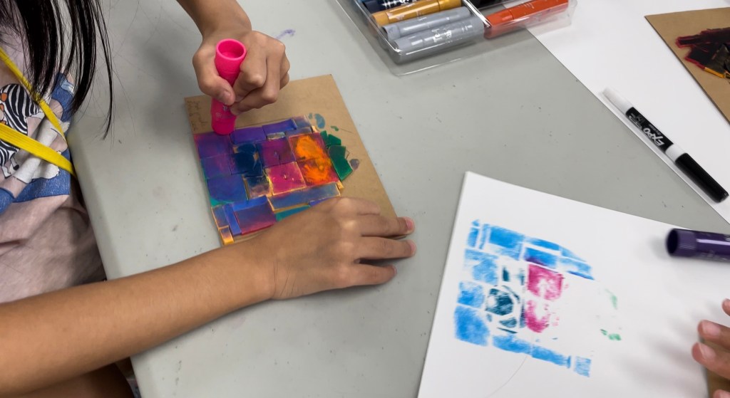 While paint sticks don’t create the exact same effect as traditional printmaking ink, they still produce a unique texture and allow students to experience printmaking in a more accessible way. Furthermore, one major advantage of using paint sticks is that they make color application easy and allow students to print multiple colors at once. If you’re looking for a simple, mess-free, and engaging printmaking activity for young children, this method is definitely worth trying!